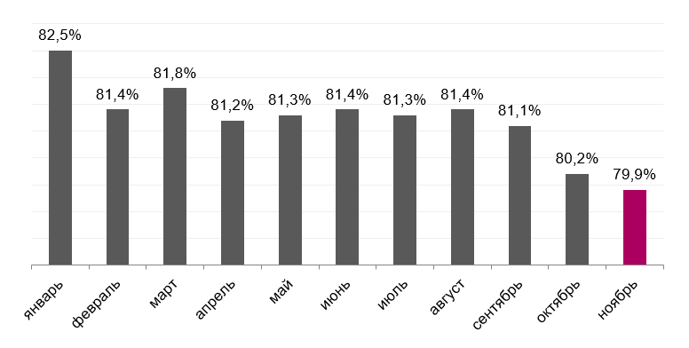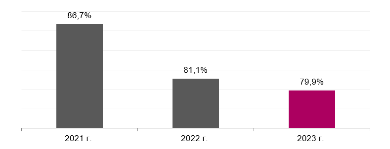 Доля захороненных ТКО в январе – ноябре в 2021 – 2023 гг.