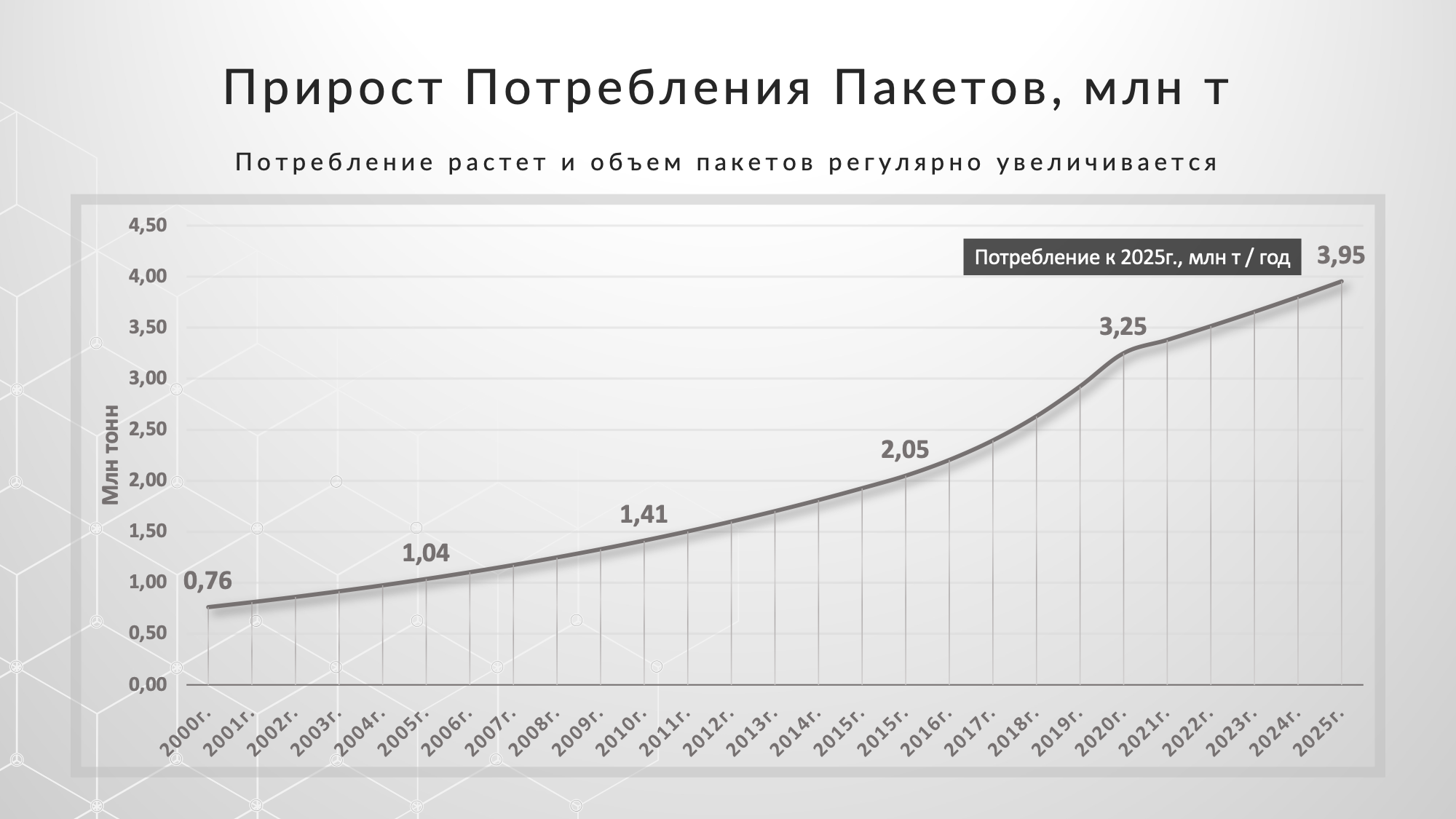 Основываясь на данных, собранных из различных источников о количестве прироста отходов начиная с 2000-х годов, мы можем провести приблизительные расчеты относительно прироста пленочных отходов, таких как кульки и пакеты.
