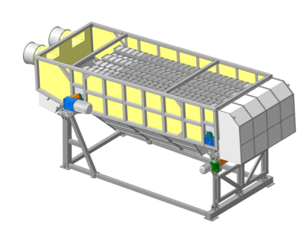 Баллистический Сепаратор — спроектирован для эффективного разделения разнообразного материала на три основные фракции в зависимости от их удельного веса и размера. Первая фракция (мелкая) — проходит через отверстия в сетках лотков. Это позволяет отделить самые мелкие и легкие частицы материала. Вторая фракция (тяжелая) — сходит вниз с лотков сепаратора из-за своего большего веса. Это обычно включает в себя крупные и плотные объекты. Третья фракция (легкая) — поднимается вверх по лоткам, так как она обладает меньшим удельным весом и часто состоит из легких и объемных материалов.