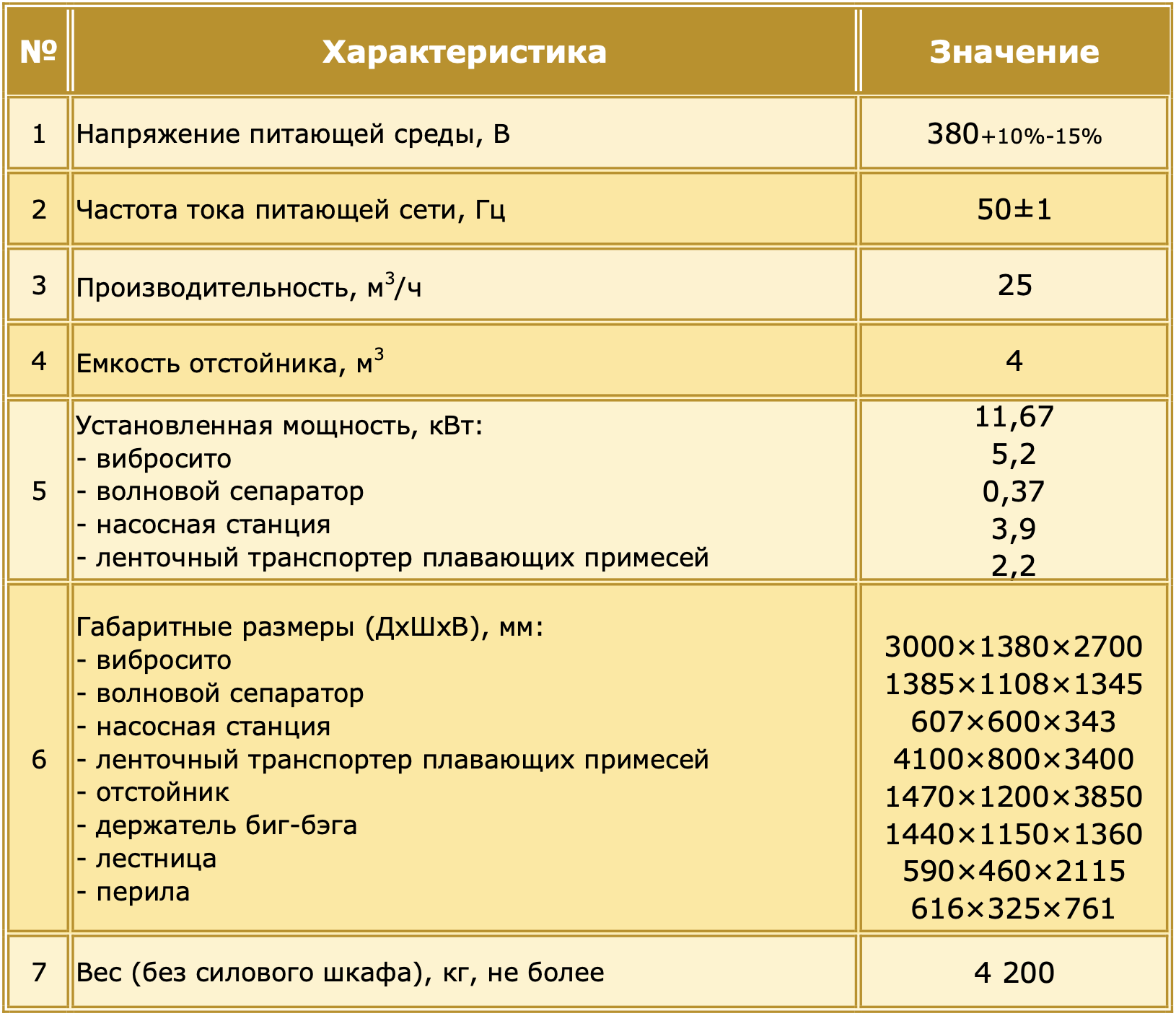 Таблица 1 – Технические характеристики