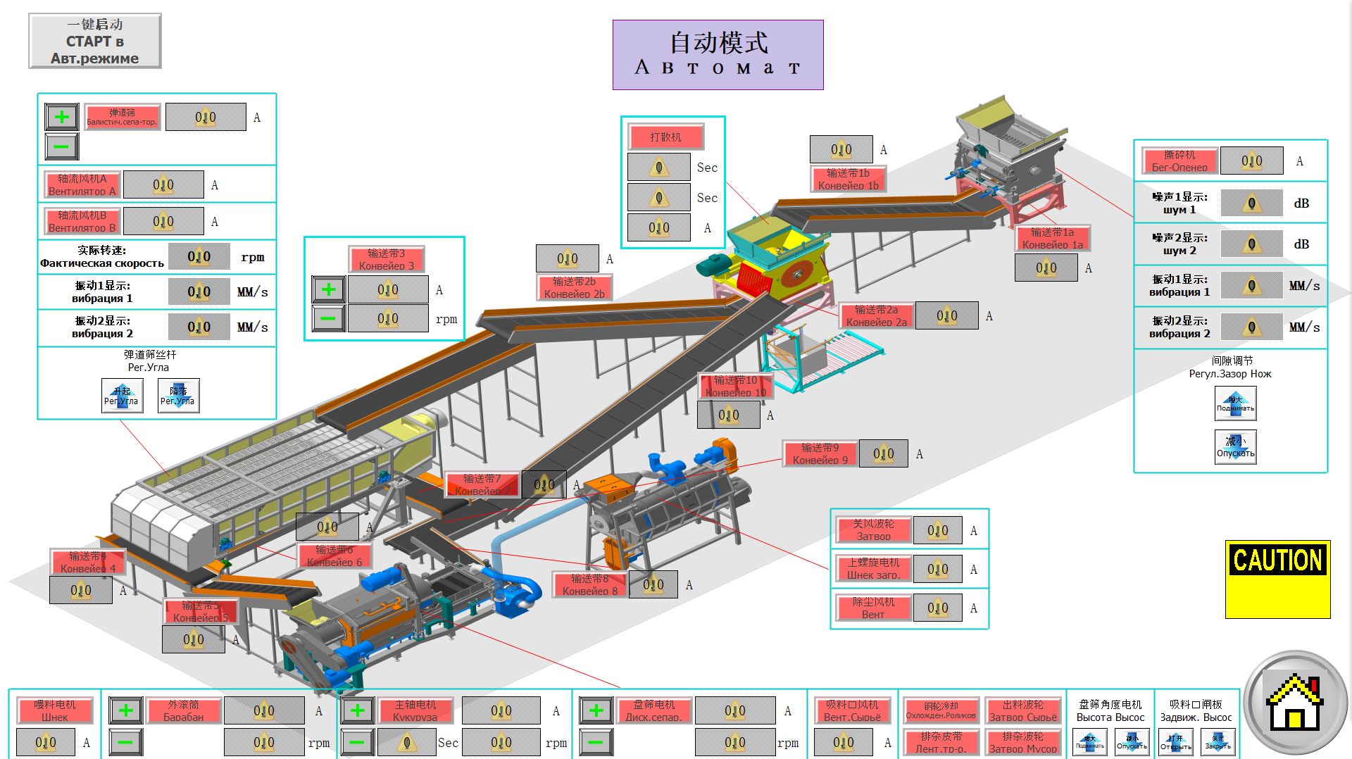 • Контроль перемещения перерабатываемого материала в узлах линии;