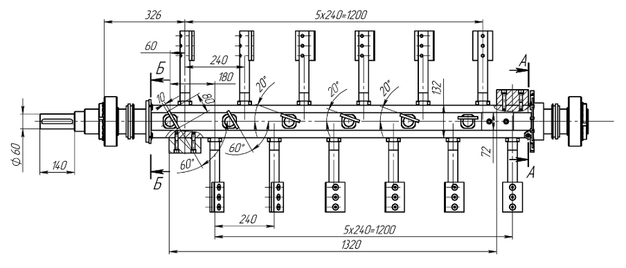 Лопатки (2) (24шт.) вкручиваются в отверстия ротора и фиксируются от проворачивания гайками (3). По функциональному назначению и углам установки лопатки делятся на 3 группы. 8 лопаток первой группы обеспечивают перемещение сырья вдоль оси из зоны загрузки в зону отжима. Лопатки второй группы (12шт.) в зоне отжима отделяют влагу от сырья и одновременно перемещают его в зону выгрузки. 4 лопатки третьей группы в зоне выгрузки (рабочие поверхности лопаток параллельны оси ротора) выводят осушенное сырьё. Конструктивно лопатка состоит из стальной пластины (80х120х10мм) и пальца с резьбой (М39х2). Пластина соединяется с пальцем тремя винтами. Вкрученные в ротор лопатки обеспечивают подачу сырья в зазоре до 300мм.